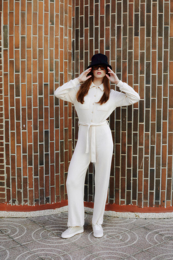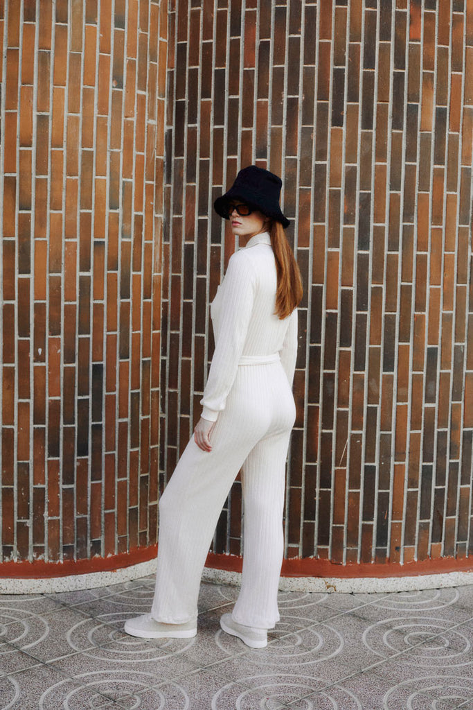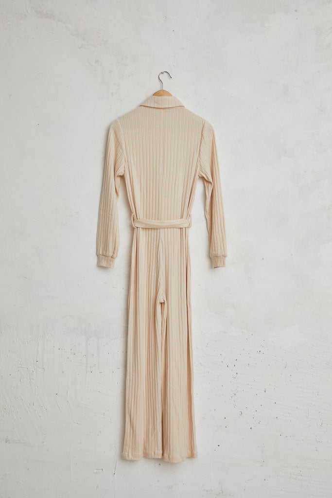 Mono con botones de tejido de punto canalé de color beige, perfecto para ir diferente pero sobre todo cómoda. Lleva botones de madera y se acopla perfectamente al cuerpo. Lleva cinturón del mismo tejido. Disponible en talla S, M y L.