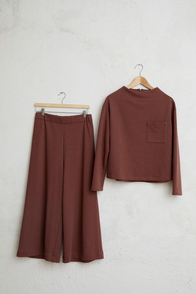 Pantalón palazzo en color berenjena. Lo puedes combinar con el top del mismo color y tener el SET PERFECTO. Tejido tipo sudadera, con textura suave y agradable al tacto