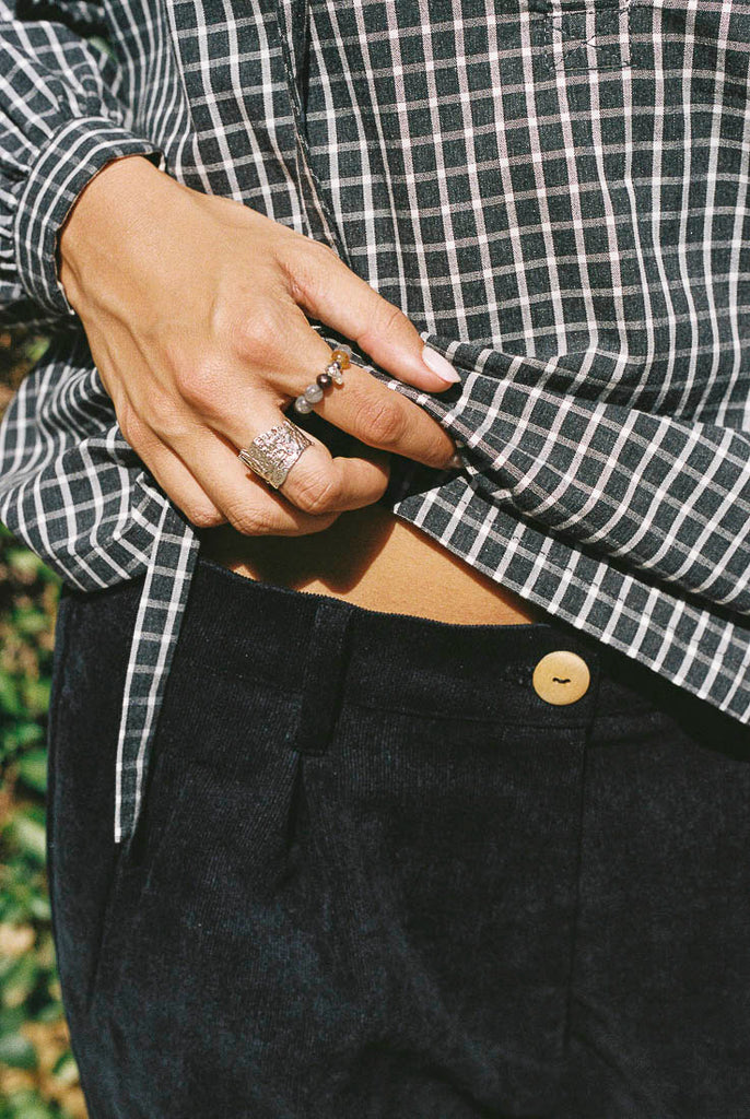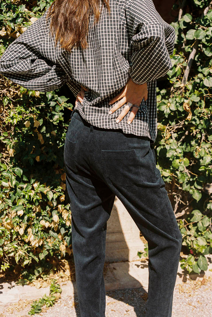 Pantalón baggy de micropana en color negro. Lo puedes combinar con nuestras blusas pintor cuadros y en color crema.