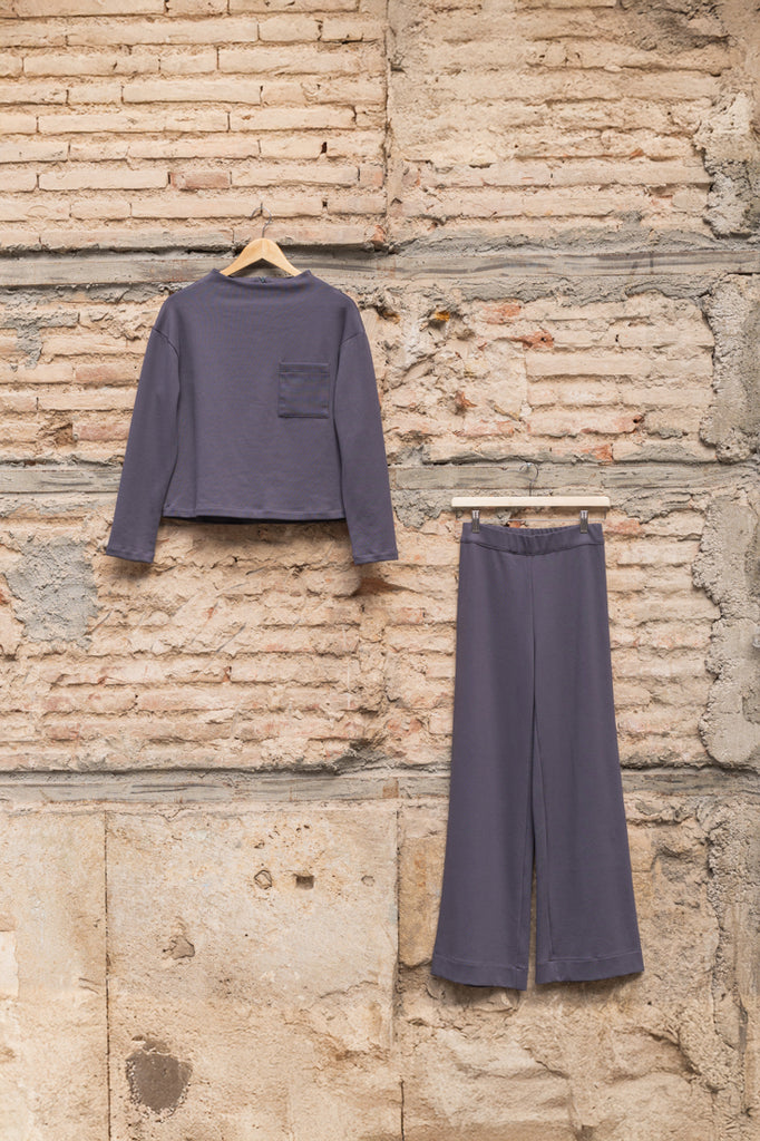 Pantalón recto en color gris oscuro. Lo puedes combinar con el top del mismo color y tener el SET PERFECTO. Tejido tipo sudadera, con textura suave y agradable al tacto