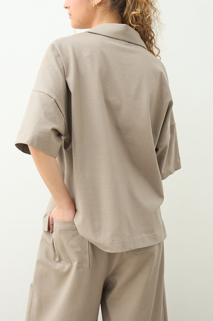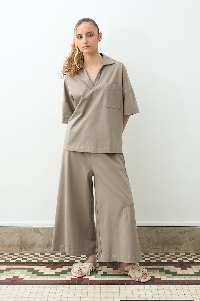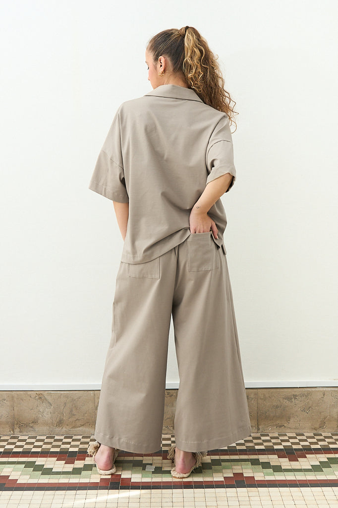 Pantalón palazzo en 100% algodón orgánico color gris piedra. Lo puedes combinar con el polo en algodón del mismo color y tener el SET PERFECTO.